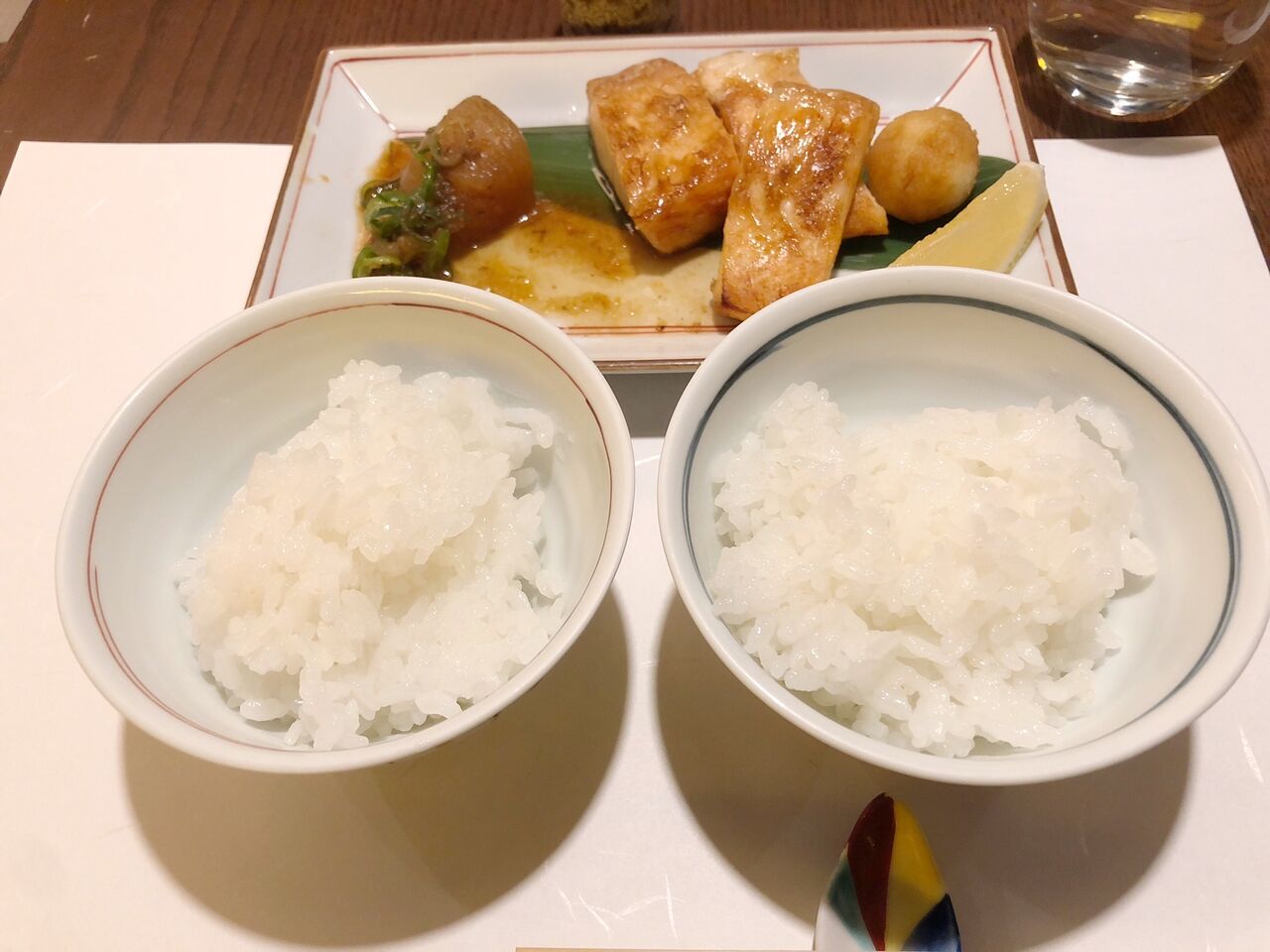 7品のお昼のコースで満たされました。5種類のお米から2つ選んでご飯の食べ比べができるのが面白いです。食べきれなかったご飯は持ち帰りようにしてくれました。